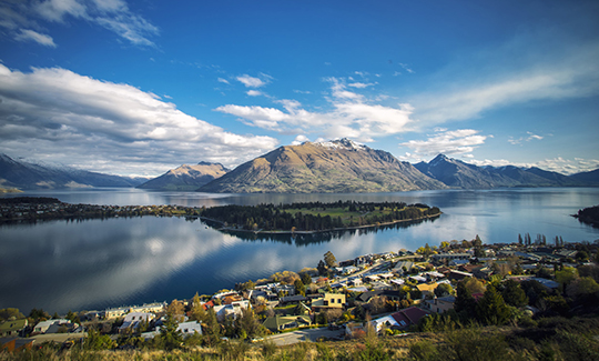 皇后鎮是一個被南阿爾卑斯山包圍的美麗小鎮,也是一個依山傍水的美麗城市。皇后鎮全處都是完美的觀光地點,夏季藍天艷陽,秋季為鮮紅與金黃的葉子染成繽紛多彩的面貌,冬天的氣候清爽晴朗,還有大片覆著白雪的山嶺,而春天又是百花盛開的日子。四季分明,各有著截然不同的面貌。
