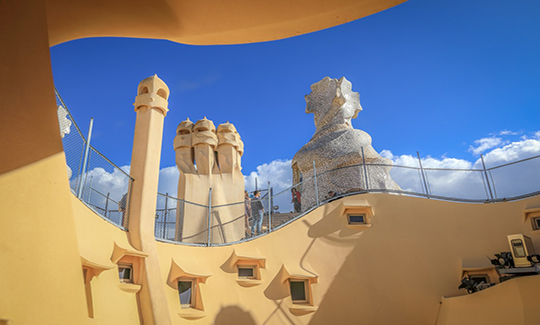 08:30 乘車前往市中心,抵達后參觀著名的高迪三件套之一的巴特羅公寓*(入內參觀,含中文耳機講解,入內約40 分鐘),這是高迪先生的得意之作,整棟建筑如波濤洶涌的海面,極富動感,非常怪異。參觀米拉之家(外觀)波浪形的外觀,是由白色的石材砌出的外墻,扭曲回繞的鐵條和鐵板構成的陽臺欄桿,和寬大的窗戶,可讓人發揮想像力,有人覺得像非洲原住民在陡峭的懸崖所建造類似洞穴的住所,有人覺得像海浪,有人覺得像退潮后的沙灘等等… ;之后享受巴塞羅那的自由活動時間。