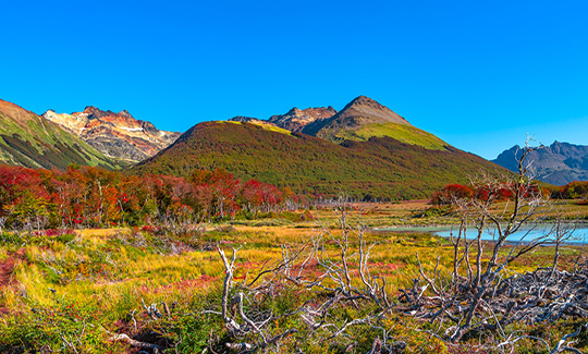早餐后前往游覽世界最南端的國家公園【火地島國家公園】(約 2 小時),這是世界最南部的一個 自然保護區,,雪峰、山脈、湖泊、森林點綴其間,古印地安人的草棚隱約可見,極地風光無限, 景色十分迷人。搭乘世界盡頭的觀光小火車游覽世界公路最南端的盡頭【阿根廷 3? 號公路】與世 界最南端的【淡水湖】,前往大陸最南端的郵局打卡晚餐后,入住酒店。下午飛往卡拉法特,抵達 后導游接機,隨后游覽【卡拉法特小鎮】,飽覽邊陲小鎮的秀麗風景,呼吸清新的空氣,漫步在獨 特的商業街區。晚餐后入住酒店休息.
