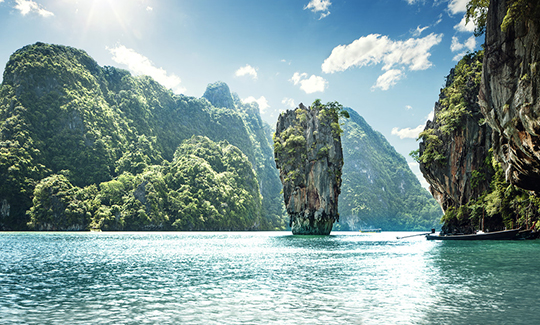 ※【神仙半島】(約 30 分鐘)位于普吉島最南端,由于在觀景臺上供奉了一尊四面佛,所以當地人稱它為“神仙半島”。 壯觀的巖壁景觀,是神仙半島主要的風景特色,巖壁下的圓石、棕櫚樹交錯是東南亞特有的沿海風情,海流漩渦和海浪的? 壯麗氣勢,是普吉島著名的旅游景點,從這可眺望到遠處離島。
