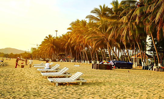 芽莊海灘:芽莊擁有6公里長的沙灘,大多數時候海水都很清澈,尤其在每年的6月-10月。海邊椰樹成林,綠植被裁剪成各種造型,讓人心醉不已,大多可直接步行至海灘。