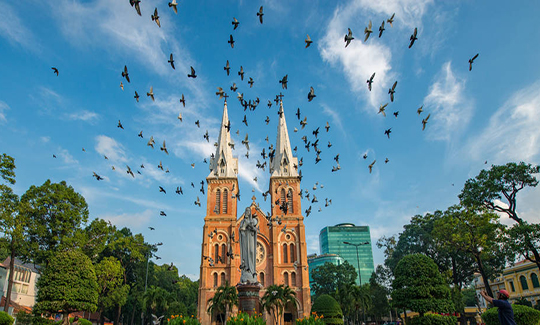 ※ 【百年教堂】? (游覽時間不少于20分鐘)? 胡志明市圣母大教堂? (紅教堂)? 建于 19 世紀末 ,? ?以其標志性的紅磚外墻和兩 座高聳的鐘樓聞名 ,? 是法屬時期經典建筑? ?作為城市地標 ,? 其莊嚴復古的外觀極具攝影價值 ,? 坐落于繁華市中心 ,? 周邊氛 圍浪漫 ,? 是游客感受歐洲風情與歷史文化的必到之處?
