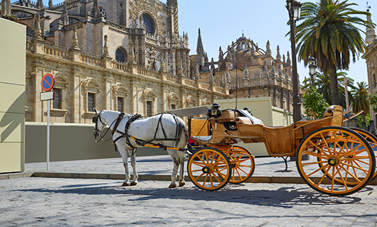 酒店內早餐后前往卡門故鄉(xiāng)-塞維利亞;游覽塞維利亞大教堂(外觀),偉大的航海家哥倫布曾藏于此地;游覽阿爾卡薩爾摩爾人王宮(外觀),皇家騎士俱樂部斗牛場(外觀)斗牛場建筑中最醒目的是富麗堂皇的半圓形拱廊和王子門(外觀),斗牛場對面有一座名為雪茄廠女工卡門的雕塑,黃金塔(外觀)是西班牙塞維利亞的一座十二邊形的軍事了望塔,興建于13世紀的穆瓦希德王朝。之后游覽西班牙最美麗的廣場塞維利亞西班牙廣場,也是西班牙摩爾復興建筑的縮影。