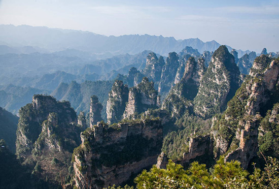 早餐后,游中國第一個國家森林公園---【張家界國家森林公園】--【世界地質公園】-【世界自然遺產】(門票已含)武陵源標志門門入口處進山乘環保車至天子山索道站乘索道至山頂(贈送費用72元)。后乘環保車至【天子山】景區,張家界標志性景點-西海觀景臺、石船出海、賀龍公園等,游覽時間約1.5小時。后乘30分鐘環保車抵達游覽【袁家界核心景區】《阿凡達》外景拍攝地——哈利路亞山(約1.5小時),探尋影視阿凡達中群山漂浮、星羅棋布的玄幻莫測世界;參觀云霧飄繞、峰巒疊嶂、氣勢磅礴的迷魂臺,及天下第一橋等空中絕景。后乘百龍電梯下山(贈送費用72元)漫步“世界上最美麗的大峽谷”之一【金鞭溪】(約1小時):享受最清新的鳥語花香,潺潺流水,是武陵源風景最美的地界,穿行在峰巒幽谷間,溪水明凈,跌宕多姿
