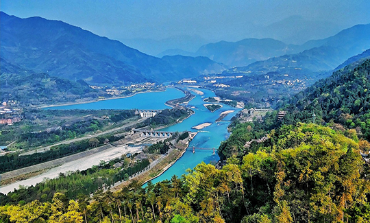 午餐后出發(fā)車覽5.12地震后上海援建的新城,穿過新城即到以“水為魂、以文為脈節(jié)、以商為道、以游為本”的【灌縣古城】,換乘景區(qū)古城觀光車(10元/人,自理)通過灌城古街,后經(jīng)南橋至都江堰景區(qū)進(jìn)入離堆公園,游覽川西第一名園-清溪園、堰功道、臥鐵、張松銀杏(西游記里的人參果樹)、伏龍觀 。之后來到戰(zhàn)國(guó)秦昭王時(shí)期(公元前227年)蜀郡守李冰在岷江上修建的中華第一古堰-被列為“世界文化遺產(chǎn)”的都江堰水利工程:寶瓶口引水口,飛沙堰泄洪壩,后乘坐景區(qū)單程觀光車(10元/人,自理)到達(dá)觀魚嘴分水堤,過安瀾索橋,隔著岷江內(nèi)江觀看在5.12地震中被損壞的秦堰樓、紀(jì)念李冰父子的二王廟,登玉壘閣扶梯(40元/人,自理)觀都江堰全景。
