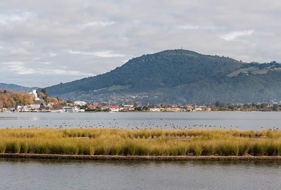 湖下方及其周圍的地熱活動一直持續(xù)不斷。地熱蒸汽不斷在湖邊縈繞,湖水中硫磺的含量很高,因此形成了一種神奇的綠藍色。漫步湖岸,你可以看見平靜的湖水被周遭起伏的丘陵包圍,曲線柔和,與天際相接。隨處看見大群的黑天鵝在湖中優(yōu)雅游弋,還有數(shù)不盡的肥大彩虹鱒魚悠游在遼闊的湖面下。
