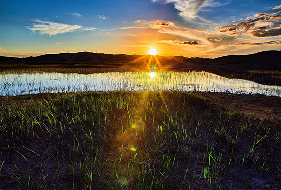 夜幕降臨,在泡子邊的蒙古包里住一晚,圍坐在篝火旁欣賞如泣如訴的馬頭琴和抑揚悲壯的蒙古長調,別有意境。夜深,枕邊細細體味寂靜草原之夜浪漫情趣,耳旁風吹蘆葦的沙沙聲會催人入眠。清晨早起呼吸草原清新空氣,觀湖面晨光,看第一線陽光把眼前的一切都染成金色。