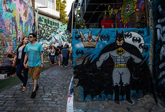 蝙蝠俠胡同藏在維拉馬達萊納區深處的一條數百米的小巷,巷子從地面到墻上的每一寸都被涂滿五顏六色的涂鴉。從這條巷子出發,能充分感受一下濃郁的南美色彩。這條著名的巷子吸引了世界各地的涂鴉藝術家,每隔一段時間都會有新的涂鴉蓋過舊的涂鴉。所以每次到蝙蝠俠胡同,墻上的涂鴉都會有所不同,這也是這里的迷人之處。