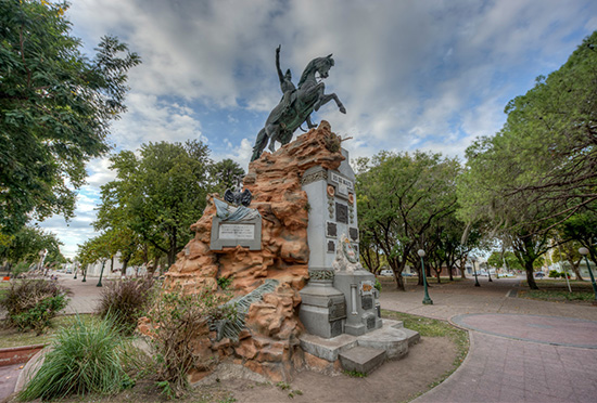 圣馬丁廣場得名于阿根廷的民族英雄圣馬丁將軍誕辰100周年,它位于Retiro區。圣馬丁將軍出生于殖民地官員家庭,在五月革命之后帶領愛國軍為阿根廷硬的了獨立。廣場上有圣馬丁將軍騎馬的雕像,是由法國雕刻家路易斯·約瑟夫·道瑪斯(Louis-Joseph Daumas)創作的。