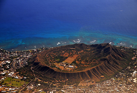 鉆石頭山是與威基基海灘齊名的檀香山的兩大象征,又名“鉆石頭火山”。在登頂步道上不但能了解火山口的地質構造,更可一窺此地與軍事息息相關的歷史。步道大部分是天然凝灰巖地表,夾雜諸多之字形上坡路,穿越火山口內壁的山坡,爬上陡峭的階梯,再穿越過69米長的隧道。到達頂峰,可以看到火山口邊緣的軍事掩體,以及1917年建于火山口外緣的導航燈塔。