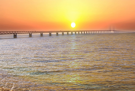 往來馬爾默和哥本哈根的火車奔馳于大橋之上,十分方便。一般船只從杜洛格敦海峽經(jīng)過,下方即是海底隧道,遙望厄勒海峽大橋,十分壯觀。