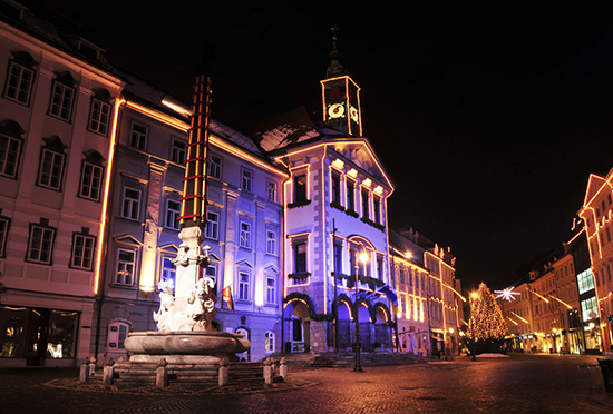盧布爾雅那市政廳是盧布爾雅那市政府現在所在地,其主體建筑是15世紀著名的建筑大師Peter Bezlaj的作品,1719年副樓被加蓋到它的兩側。如今現市政廳設有四個展覽大廳,主要展示盧布爾雅那城市發展史,國際城際間合作等各類藝術展覽。