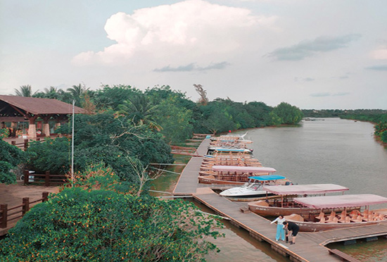 東寨港紅樹林保護區是中國最大的紅樹林自然保護區,被譽為“海上森林公園”,在這里一定要坐船游玩才能全面欣賞到保護區的景色。這里雖被叫做紅樹林,但實際上樹葉顏色依舊是郁郁蔥蔥的綠,坐船沿海道蜿蜒而過,沿途都是半淹在水中的紅樹林,讓人不得不驚嘆他們頑強的生命力。若運氣好,船行中還能看到各種鳥類,特別是到了秋冬季,這里幾乎是候鳥的樂園。