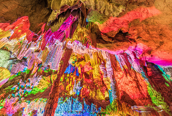 桂林荔浦銀子巖旅游景區位于桂林市荔浦縣馬嶺鎮荔桂公路東側(距離陽朔27公里),距世界旅游明珠桂林市中心85公里,距中國旅游名縣陽朔縣界3公里,是大桂林旅游圈新出現的一顆璀璨明珠。 銀子巖世界旅游度假風景區集自然、人文景觀于一體;前有廣袤的田野,俊秀的小青山、朝寨山拔地而起,使人流連忘返;宋朝英豪楊文廣、抗法英雄陳嘉的傳奇故事,更為景區增添許多人文色彩。銀子巖屬層樓式溶洞,主洞總長10余公里,現已開發游程約2公里, 巖內洞府分水陸兩層,洞內有地下河,河水清澈透明見底,河道寬敞可游船,洞內石乳奇形怪狀,千姿百態, 特色景點數十個,其中廣寒深官、金銀群塔、驚峻天橋、雪山飛瀑、音樂石屏、玉樹瓊枝、雙柱擎天更是令人嘆為觀止;巖中暗河潛山蜿蜒而來,迂回曲折,神秘幽深,河水清澈,游魚可數;沿河兩岸景點絢麗多姿,乘舟漂游可達巖外青湖。銀子巖景觀以雄、奇、幽、羨獨領風騷、被國內外洞穴、巖溶、地質專家譽為“桂林山水的代表”、“世界巖溶寶庫”,并入選《國家地理》雜志“流石、石瀑、石幕醉壯觀洞穴”。