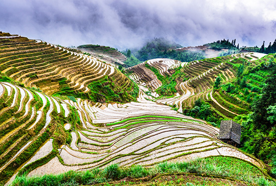 龍脊梯田風景名勝區位于廣西壯族自治區桂林市龍勝各族自治縣和平鄉,占地面積70.1平方公里,距桂林市75公里,321國道可通達景區大門口,交通十分便利,國家AAAA級景區、全國農業旅游示范點。夜幕低垂,熱情奔放的原生態歌舞晚會上演了,熱情好客的村民身著節日盛裝,與遠方的客人跳起“大團圓舞”舞,人們沉浸在歌舞的海洋中,盡情歡歌狂舞。龍脊梯田風景名勝區位于廣西壯族自治區桂林市龍勝各族自治縣和平鄉,占地面積70.1平方公里,距桂林市75公里,321國道可通達景區大門口,交通十分便利,國家AAAA級景區、全國農業旅游示范點。景區處于亞熱帶季風氣候區,年平均氣溫為17℃,氣侯宜人,年平均降雨量1650毫米。龍脊梯田歷史悠久、民族文化燦爛,梯田始建于元朝,成形于明朝,完工于清初,距今已有近700年的歷史。梯田的規模磅礴壯觀、氣勢雄渾,集成世界梯田造型之精華,線條如行云流水、瀟灑流暢,為天下梯田景觀之冠,堪稱“天下一絕”。龍脊梯田風景名勝區是一個以梯田稻作農耕文化為主體,集自然景觀與少數民族人文景觀相結合的風景名勝區。目前已開發形成:平安壯族梯田觀景區;金坑紅瑤梯田觀景區;龍脊古壯寨梯田文化觀景區。